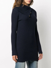 fold-over collar jumper Are you ready to get knitty with it? This navy ribbed jumper from Saint Laurent is spun from camel hair and boasts a unique fold-over collar with anchor buttons. Sweet outfit, sailor. Highlights - Navy - Camel hair - Fold-over collar with anchor button trim - Chunky ribbed knit - Long sleeves Made in Italy Composition Camel Hair 100% SIZE & FIT Model measurements Height 5 ft 9 in(1.75 m) Bust/Chest 32.67 in(83 cm) Hips 36.22 in(92 cm) Waist 24.8 in(63 cm) FittingInformation This piece fits true to size. We recommend you get your regular size Cut for a slim fit Made with a mid-weight fabric Measurement LENGTH 31.1 in(79 cm) WAIST 21.25 in(54 cm) BUST 23.62 in(60 cm) Washing instructions Hand Wash
