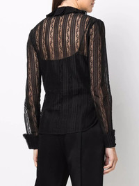 frilled-neck lace shirt black silk/cotton-blend lace panelling frilled neckline front button fastening long sleeves buttoned cuffs straight hem Made in Italy Composition Cotton 90% Outer: Polyamide 10% SIZE & FIT Model measurements Height 5 ft 10 in(1.78 m) Bust/Chest 33.07 in(84 cm) Hips 35.82 in(91 cm) Waist 26.96 in(68.5 cm) Measurement LENGTH 25.19 in(64 cm) FittingInformation This piece fits true to size. We recommend you get your regular size Cut for a slim fit Made with a lightweight non-stretch fabric Washing instructions Dry Clean Only