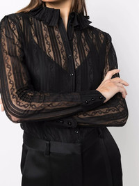 frilled-neck lace shirt