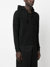 lace-up organic-cotton hoodie Highlights - Jet black - Cotton - Classic hood - Front lace-up fastening - Long sleeves - Single patch pocket - Straight hem Made in France Composition Cotton 100% SIZE & FIT Model measurements Height 6 ft 2 in(1.87 m) Bust/Chest 36.41 in(92.5 cm) Hips 37 in(94 cm) Waist 29.52 in(75 cm) FittingInformation This piece fits true to size. We recommend you get your regular size Cut for a slim fit Made with a mid-weight fabric
