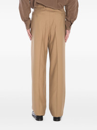 gabardine trousers Highlights - Sand brown - Hook and zip fly fastening - Two side slit pockets - Two rear button-fastening pockets - Pleat detailing Made in Italy Composition Outer: Cotton 100%, Wool 100%, Elastane 100% Lining: Silk 100%