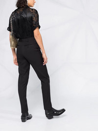 high-rise tailored trousers Highlights - Black - Wool - High-waisted - Belt loops - Concealed front fastening - Two rear button-fastening pockets - Slim cut Made in Italy Composition Lining: Polyester 100%, Cotton 97%, Spandex/Elastane 3% Outer: Wool 100% SIZE & FIT FittingInformation This piece fits true to size. We recommend you get your regular size Cut for a slim fit Made with a mid-weight non-stretch fabric Washing instructions Dry Clean Only