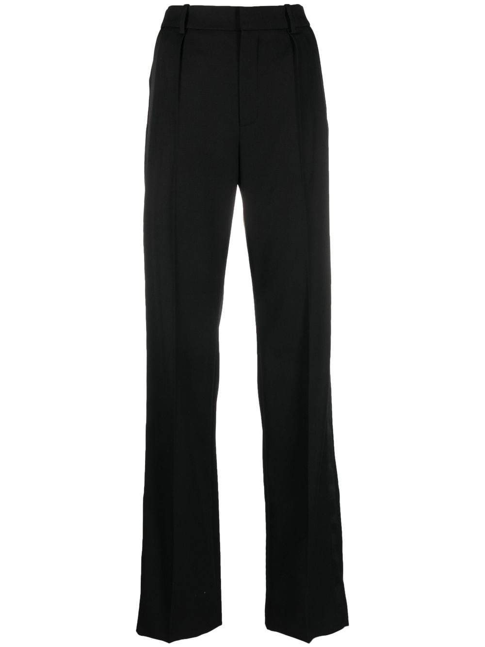 high-waisted straight-leg trousers black wool blend high waist hook and zip fly fastening two diagonal pockets to the sides two rear jetted pockets straight leg Made in Italy Composition Lining: Cotton 97% Outer: Wool 100% SIZE & FIT Model measurements Height 5 ft 10 in(1.78 m) Bust/Chest 31.49 in(80 cm) Hips 36.22 in(92 cm) Waist 25.59 in(65 cm)