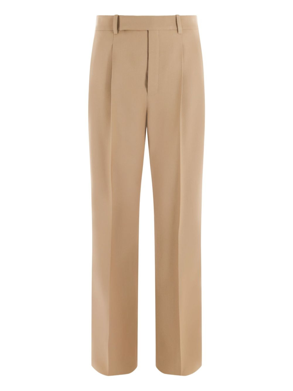 high-waisted tailored trousers Highlights - Sand beige - Wool - High-waisted - Wide leg - Pressed crease - Concealed front fastening - Belt loops - Two rear welt pockets - Tailored cut Made in Italy Composition Outer: Wool 100% SIZE & FIT Measurement INSIDE LEG 40.15 in(102 cm) HIPS 34.64 in(88 cm) WAIST 26.77 in(68 cm)