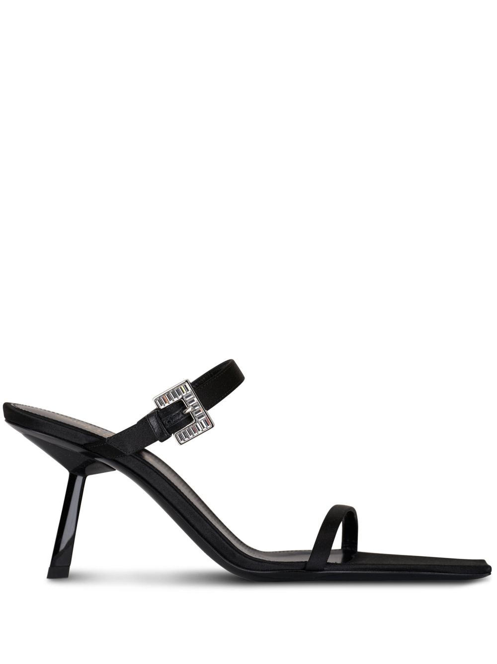 Hope 75mm buckle-detailed sandals Highlights - Black - Satin - Crystal buckle detail - Square toe - Open toe - Branded leather insole - Slip-on style - Pin heel - 75mm heel height Made in Italy Composition Outer: Crystal 100%, Satin 100% Lining: Leather 100% Sole: Leather 100%