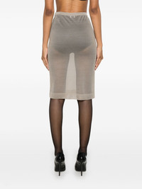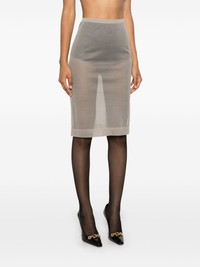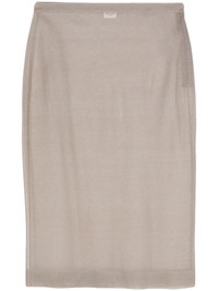 knitted pencil midi skirt Highlights - Taupe grey - Silk - Fine knit - Pencil silhouette - Concealed side zip fastening - Semi-sheer construction - Elasticated waistband - Unlined - Ribbed hem - Mid-length Made in Italy Composition Silk 100% SIZE & FIT Model measurements Height 5 ft 10 in(1.78 m) Bust/Chest 32.67 in(83 cm) Hips 35.43 in(90 cm) Waist 23.22 in(59 cm) FittingInformation This midi-length skirt is intended to be worn high on the waist Made with a fine knit, this piece offers some stretch This piece fits true to size – take your usual size Washing instructions Dry Clean Only