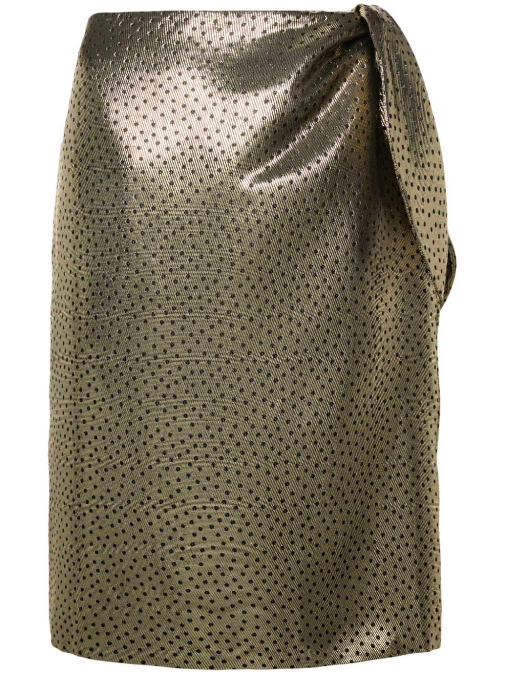 tied pencil skirt in dotted lamé