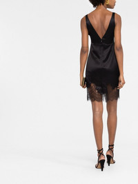 lace-trim satin minidress Upholding its legacy of elegance, this Saint Laurent minidress features a V-neck design with a lace hem. Highlights - Black - V-neck - Sleeveless - Empire line - Lace trim - Above-knee length - Concealed rear zip fastening Made in France Composition Outer: Polyamide 50% Fabric 100% SIZE & FIT Model measurements Height 5 ft 11 in(1.8 m) Bust/Chest 31.49 in(80 cm) Hips 35.82 in(91 cm) Waist 24.8 in(63 cm) FittingInformation This piece fits true to size. We recommend you get your regular size Designed for a close fit at the bust, waist and hips Made with a mid-weight fabric Washing instructions Dry Clean Only