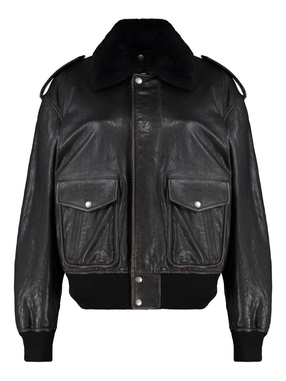 lambskin bomber jacket Highlights - Black - Lambskin leather - Shearling collar - Snap button fastening - Front pockets - Ribbed hem and cuffs Made In Italy Composition Outer: Lambskin 50%, Sheep Skin/Shearling 50% Lining: Cupro 100%, Cotton 100%