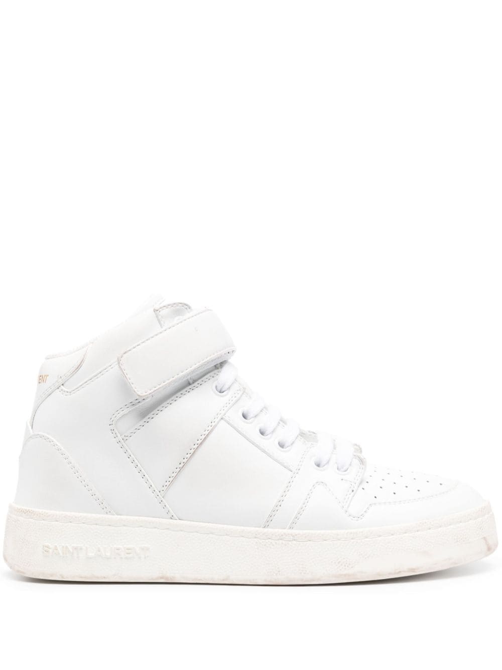 Lax distressed leather sneakers Highlights - Optical white - Calf leather - Branded heel counter - Embossed logo to the side - Front touch-strap fastening - Front lace-up fastening - Distressed finish - Round toe - Ankle-length - Branded insole - Flat rubber sole Made in Italy Composition Leather 100% SIZE & FIT Measurement HEEL 1.57 in(4 cm) HEIGHT 3.14 in(8 cm) Sole height 0.78 in(2 cm)
