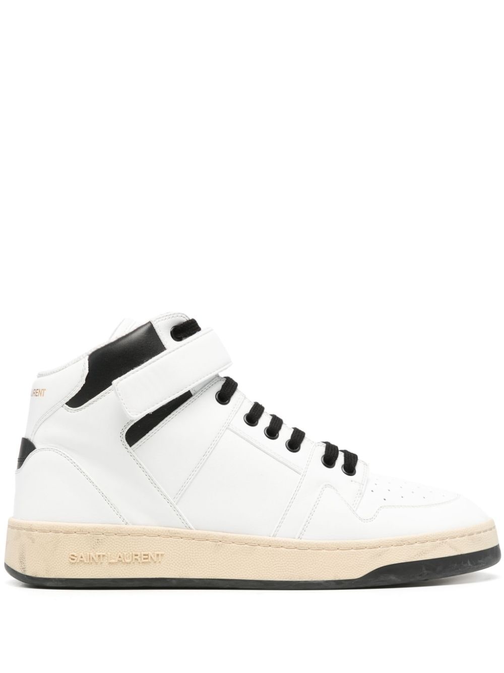Lax high-tops sneakers Highlights - White/black - Calf leather - Smooth grain - Panelled design - Round toe - Perforated detailing - Logo-debossed tongue - Logo stamp to the rear - Padded ankle - Mesh lining - Branded insole - Flat rubber sole - Front touch-strap over lace-up fastening Made in Italy Composition Sole: Rubber 100% Lining: Fabric 100% Outer: Calf Leather 100% SIZE & FIT Measurement HEEL 1.57 in(4 cm) HEIGHT 3.74 in(9.5 cm) Sole height 0.98 in(2.5 cm)