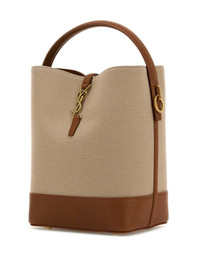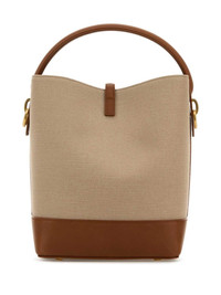Le 37 bucket bag Highlights - Beige/brown - Canvas/leather - Two-tone design - Hook fastening - Gold-tone logo plaque - Single rolled top handle - Adjustable detachable shoulder strap - Bucket body - Main compartment - This piece comes complete with a protective dust bag. Made in Italy Composition Outer: Cotton 100%, Calf Leather 100% Lining: Cotton 100% SIZE & FIT Measurement DEPTH 6.29 in(16 cm) HANDLE 3.54 in(9 cm) HEIGHT 9.84 in(25 cm) STRAP 16.53 in(42 cm) WIDTH 7.87 in(20 cm)