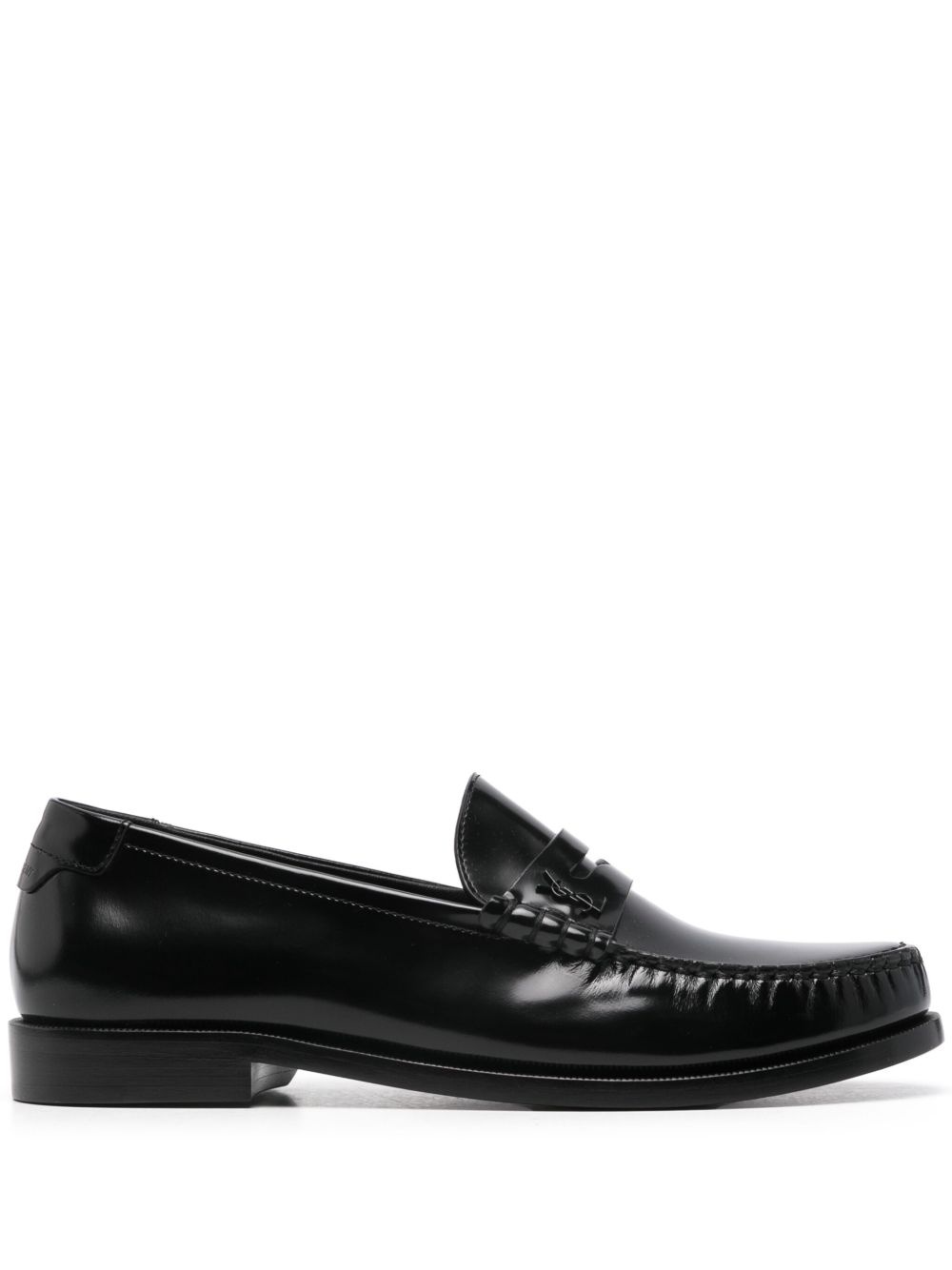 Le Loafer penny loafers These loafers from Saint Laurent are an example of the brand's ability to infuse classic Parisian elegance into its designs. The classic penny slot design speaks to tradition while the tonal logo plaque leaves a subtle branded finish. Highlights - Black - Calf leather - Logo plaque - Penny slot - Slip-on style - Stitched edge - Round toe - Flat leather sole Made in Italy Composition Outer: Calf Leather 100% Lining: Calf Leather 100% Sole: Calf Leather 100% SIZE & FIT Measurement HEEL 0.98 in(2.5 cm) Sole height 0.39 in(1 cm)