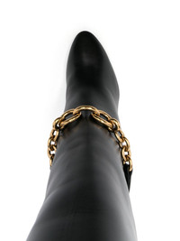 100mm Le Maillon boots Saint Laurent's latest Le Maillon boots follow the brand's timeless aesthetic with an all-black leather construction. A golden chain-link detail takes the focus of the design. Highlights - Black - Leather - Smooth grain - Chain-link detailing - Strap detailing - Almond toe - Branded leather insole - 100mm high heel - Leather outsole - Knee-high - Slip-on style - This piece comes complete with a protective dust bag. Made in Italy Composition Outer: Leather 100% Lining: Leather 100% Sole: Leather 100% SIZE & FIT Measurement CIRCUMFERENCE 12.99 in(33 cm) HEEL 3.93 in(10 cm) HEIGHT 14.96 in(38 cm)