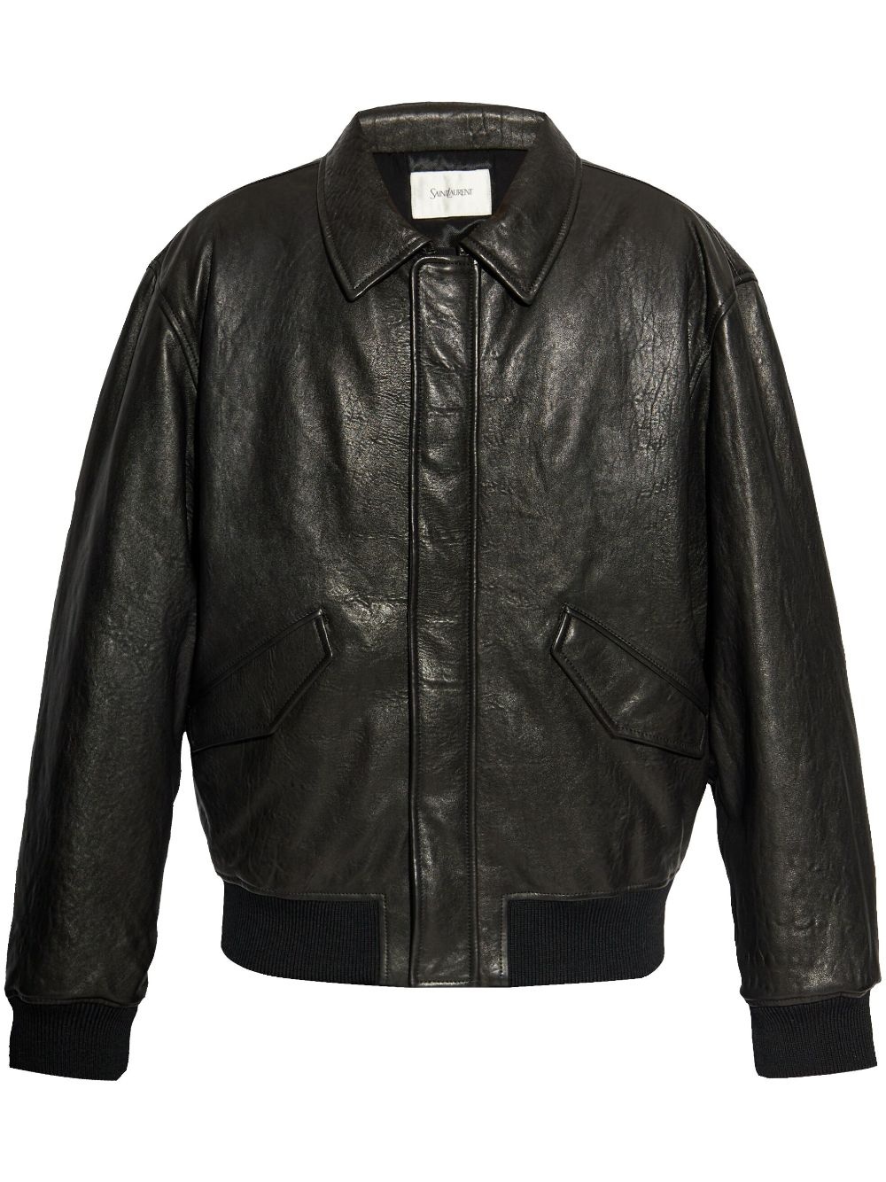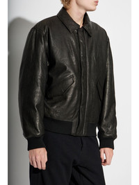 leather bomber jacket Highlights - Black - Lambskin - Cotton lining - Textured finish - Classic collar - Concealed front fastening - Two front flap pockets - Long sleeves - Straight hem Made in Italy Composition Outer: Lamb Skin 100% Lining: Cupro 100%, Cotton 100%