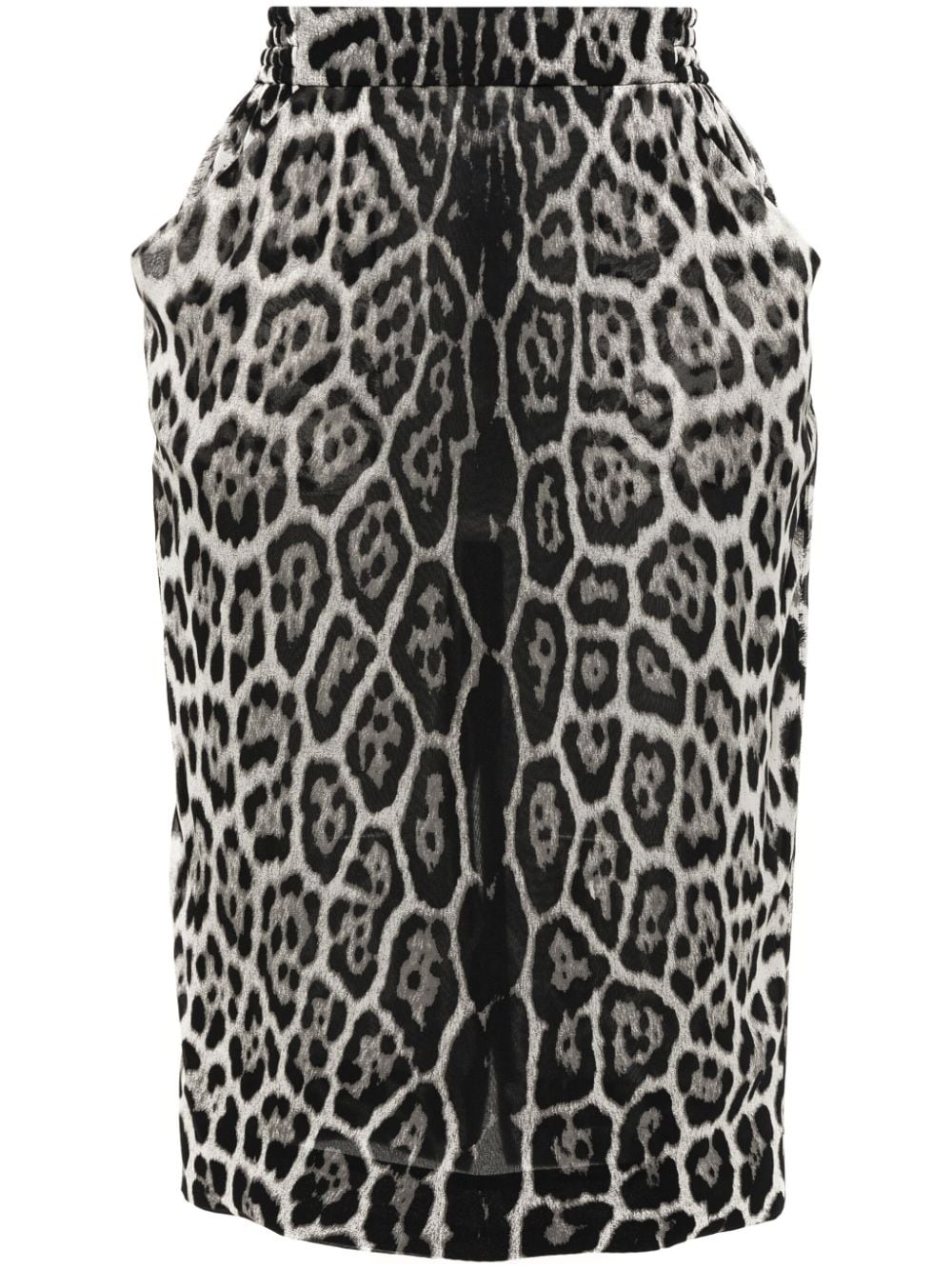 leopard-print silk skirt Highlights - Black/grey - Silk - Chiffon crepe - All-over leopard print - Elasticated waistband - Two diagonal pockets to the sides - Rear slit - Full lining - Mid-length - Straight hem - Concealed rear hook and zip fastening Made in Italy Composition Silk 100% SIZE & FIT Model measurements Height 5 ft 9 in(1.76 m) Bust/Chest 31.88 in(81 cm) Hips 35.43 in(90 cm) Waist 24.8 in(63 cm) FittingInformation This midi-length skirt is intended to be worn high on the waist The partially elasticated waistband offers increased movement and comfort at the waist Made from a lightweight non-stretch fabric This piece fits true to size – take your usual size