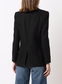 logo-embroidered single-breasted blazer Sharp lines and a tailored construction take the focus on this Saint Laurent blazer. The sophisticated look is enhanced by a small embroidered logo to the front. Made in Italy Composition Outer: Virgin Wool 100% Lining: Silk 100%, Cotton 97%, Spandex/Elastane 3% SIZE & FIT FittingInformation This piece fits true to size. We recommend you get your regular size Cut for a slim fit Made with a mid-weight non-stretch fabric Washing instructions Dry Clean Only