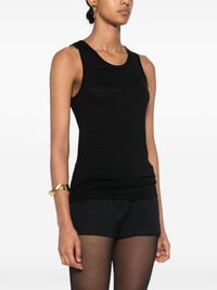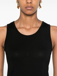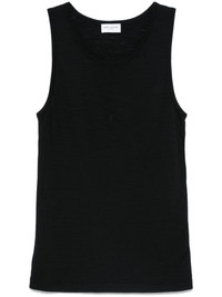 logo-embroidered tank top Highlights - Black - Wool - Lightweight jersey - Embroidered logo at the chest - Scoop neck - Sleeveless - Straight hem Made in France Composition Wool 100% SIZE & FIT Model measurements Height 5 ft 10 in(1.77 m) Bust/Chest 33.07 in(84 cm) Hips 37 in(94 cm) Waist 24.8 in(63 cm) FittingInformation Designed for a slim fit that sits just away from the body offering a close yet comfortable fit Made from a lightweight non-stretch fabric, this piece offers minimal elasticity when worn