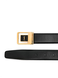 logo-plaque leather belt Highlights - Black - Calf leather - Signature cassandre logo plaque - Punched holes - Adjustable fit - Gold-tone hardware - Buckle fastening Made in Italy Composition CALFSKIN 95%, Brass 5% SIZE & FIT Measurement Maximum Length 27.95 in(71 cm) Minimum Length 24.01 in(61 cm) TOTAL LENGTH 31.1 in(79 cm) WIDTH 1.18 in(3 cm)