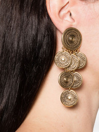 medallion drop earrings Highlights - Gold-tone - Drop design - Chain detailing - Clip-on fastening - Medallion charms - Textured finish - These earrings come as a pair. Imported SIZE & FIT Model measurements Height 5 ft 10 in(1.78 m) Bust/Chest 33.46 in(85 cm) Hips 36.22 in(92 cm) Waist 23.22 in(59 cm) Measurement HEIGHT 3.7 in(9.4 cm) Weight (single earring) 39 g(39 g) WIDTH 1.77 in(4.5 cm)