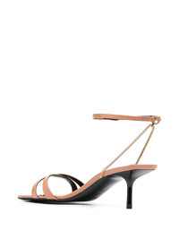 Melody ankle-strap sandals Saint Laurent's Melody sandals are elevated by slender gold-tone chains that frame the foot. They're fitted with a high stiletto heel and slim crossover straps at the front. Highlights - Brown - Calf leather - Buckle-fastening ankle strap - Chain-link detailing - Open toe - Stiletto heel Made in Italy Composition Lining: Polyurethane 100%, Calf Leather 100% Sole: Calf Leather 100% Outer: Calf Leather 100%, Metal 100% SIZE & FIT Measurement CIRCUMFERENCE 9.44 in(24 cm) HEEL 2.16 in(5.5 cm) HEIGHT 2.75 in(7 cm)
