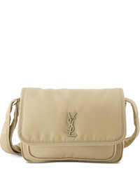 Niki messenger bag Highlights - Sesame beige - Foldover top with magnetic fastening - Adjustable shoulder strap - Internal slip pocket - Signature ysl logo plaque Made in Italy Composition Outer: Nylon 100%, Brass 100% SIZE & FIT Measurement DEPTH 2.36 in(6 cm) HEIGHT 8.26 in(21 cm) WIDTH 8.26 in(21 cm)