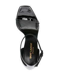Opyum 110mm patent-leather sandals Saint Laurent's Opyum sandals are instantly recognisable thanks to the gold-tone YSL logo plaque that doubles as a sculpted heel. This pair is crafted from black patent leather, in keeping with the brand’s sleek aesthetic. Highlights - Black - Calf leather - Patent finish - Square open toe - Single toe strap - Branded footbed - Buckle-fastening ankle strap - Signature cassandre logo plaque - High sculpted heel Made in Italy Composition Lining: Calf Leather 100% Sole: Leather 100% Outer: Calf Leather 100% SIZE & FIT Measurement CIRCUMFERENCE 8.66 in(22 cm) HEEL 4.33 in(11 cm) HEIGHT 3.34 in(8.5 cm)