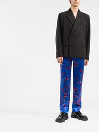 paisley-print tailored trousers royal blue/dark red silk paisley print pleat detailing front button fastening two diagonal pockets to the sides Made in Italy Composition Outer: Silk 100% SIZE & FIT Model measurements Height 6 ft 2 in(1.87 m) Bust/Chest 33.46 in(85 cm) Hips 36.22 in(92 cm) Waist 29.52 in(75 cm) FittingInformation This piece fits true to size. We recommend you get your regular size Cut for a slim fit Made with a mid-weight non-stretch fabric Washing instructions Dry Clean Only