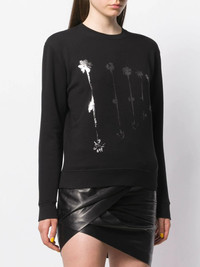 palm tree print sweatshirt Wishing you were lazing on the beach, instead of the sofa? We know the feeling. Stave off the wanderlust with this palm tree print sweatshirt from Saint Laurent. Featuring a round neck, dropped shoulders, long sleeves, a ribbed hem and cuffs and silver-tone palm tree print. Made in France Composition Cotton 100% SIZE & FIT Model measurements Height 5 ft 10 in(1.77 m) Bust/Chest 31.88 in(81 cm) Hips 35.43 in(90 cm) Waist 24.8 in(63 cm) FittingInformation This piece fits true to size. We recommend you get your regular size Cut for a relaxed fit Washing instructions Machine Wash