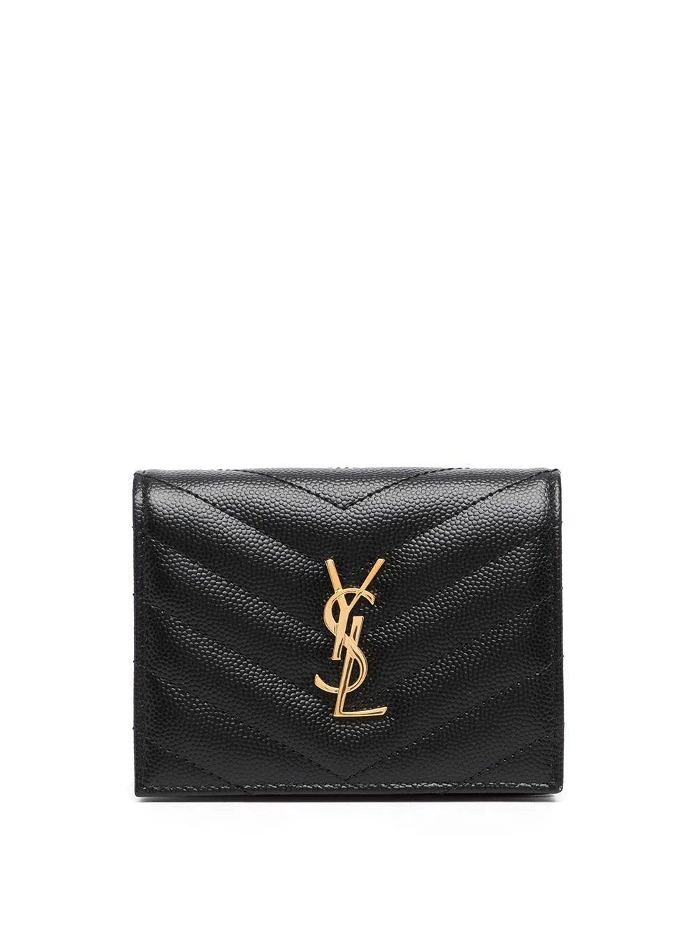 pebbled logo plaque cardholder Saint Laurent's monogram logo was created by graphic designer Cassandre in 1961. Now synonymous with the brand, it is featured in gold-tone hardware at the front of this cardholder. Note how the logo plaque stands out against the pebbled black leather. Made in Italy Composition Leather 100% SIZE & FIT Measurement DEPTH 1.18 in(3 cm) WIDTH 3.34 in(8.5 cm) LENGTH 4.33 in(11 cm) Washing instructions Do Not Wash/Do Not Dry Clean