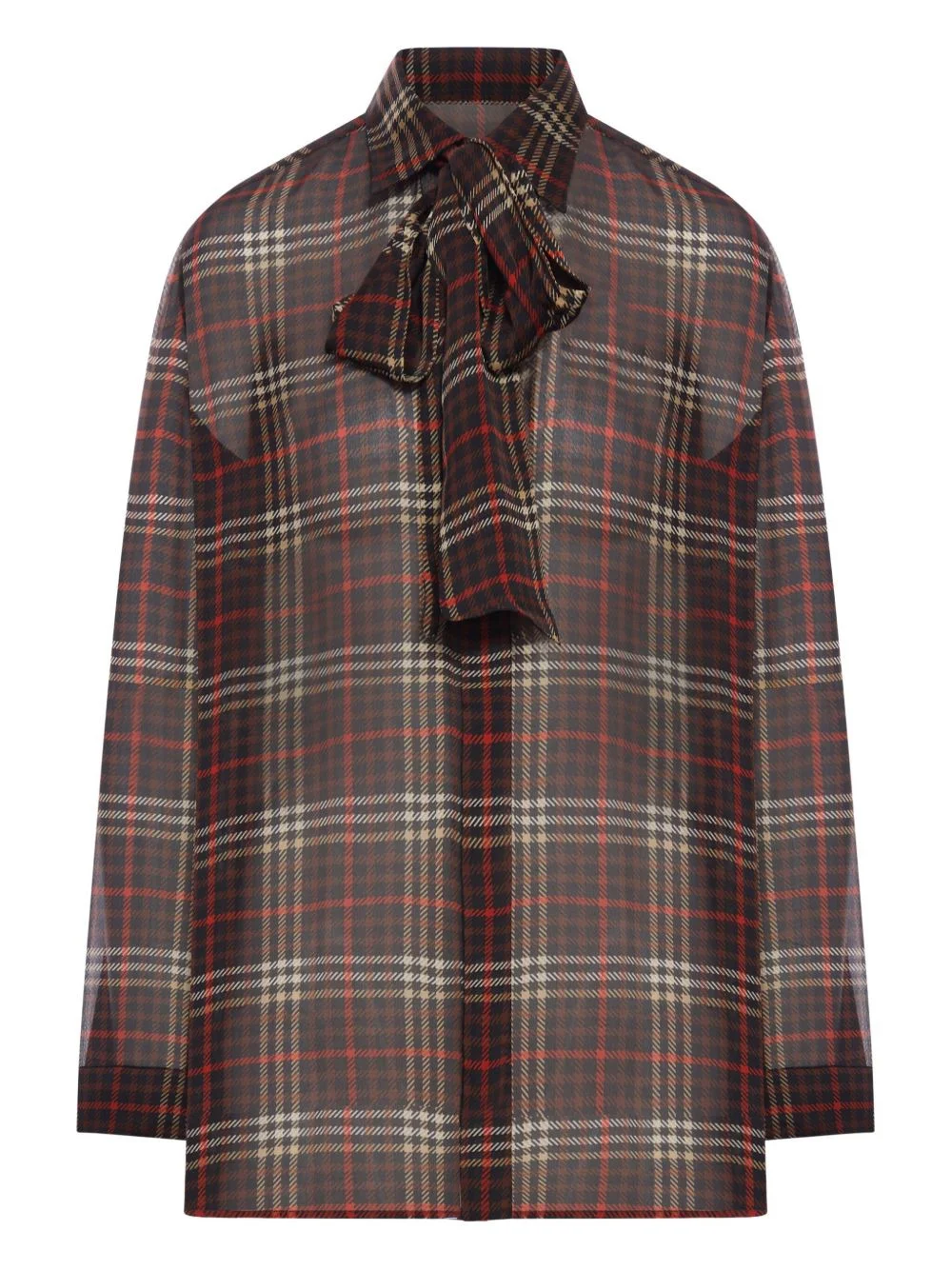 plaid silk blouse brown silk plaid pattern tie detail long sleeves Made in Italy Composition Silk 100% Washing instructions Read Manufacturer Guidelines