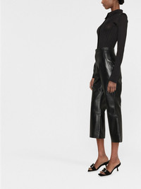 pleat-detail leather trousers Highlights - Black - Sheepskin - Pleat detailing - Dart detailing - Front button fastening - Two side inset pockets - Straight leg Made in Italy Composition Lamb Skin 100% Washing instructions Specialist Cleaning