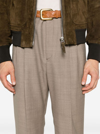pleated wool tailored trousers Highlights - Sand beige - Wool - Interlock twill weave - Pleat detailing - Belt loops - Concealed front button, hook and zip fastening - Tapered leg - Two side slit pockets - Two rear jetted pockets - Straight hem Made in Italy Composition Outer: Wool 100% Lining: Cotton 97%, Spandex/Elastane 3% SIZE & FIT Model measurements Height 6 ft 1 in(1.86 m) Bust/Chest 37.4 in(95 cm) Hips 36.22 in(92 cm) Waist 29.52 in(75 cm) FittingInformation Designed for a straight-leg, allowing for an unrestricted and comfortable fit over the leg The unfinished hems allow for the length to be altered Made from a midweight stretch fabric, this piece offers elasticity and flexibility when worn This piece fits true to size – take your usual size