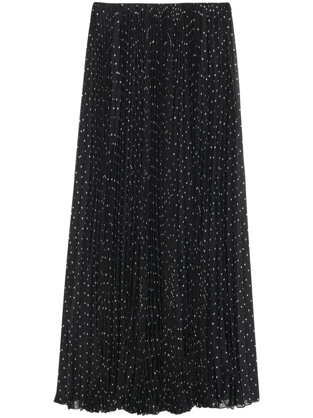 polka-dot silk pleated skirt Highlights - Black/white - Silk - Fully pleated - Polka dot print - Semi-sheer overlay - High-waisted - Flared - Side button fastening - Ankle-length Made in France Composition Silk 100%