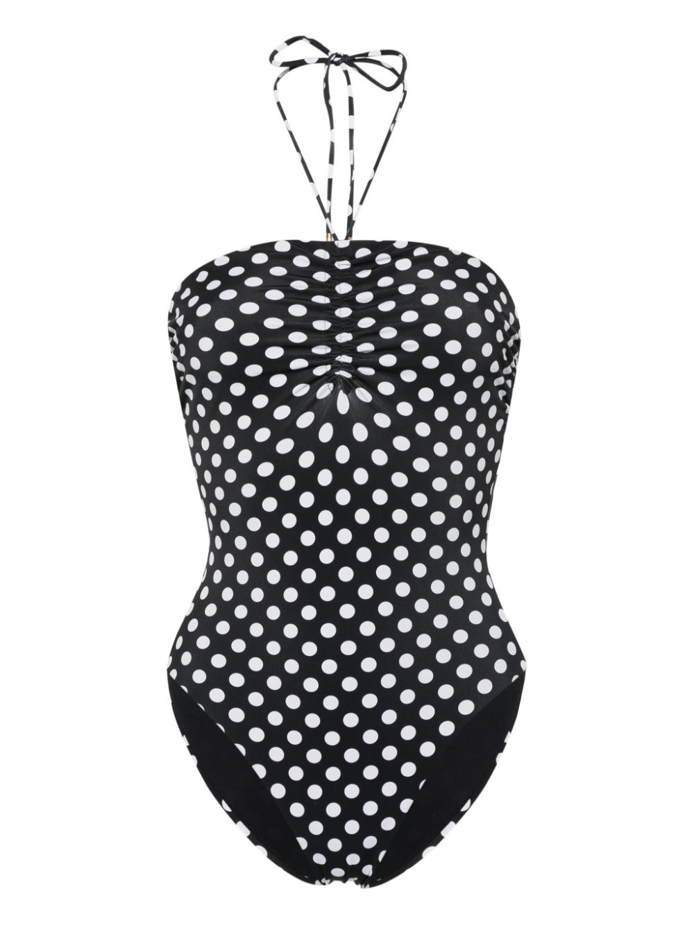 polka-dot swimsuit Highlights - Black/white - Stretch-design - Polka dot print - Halterneck tie fastening - Gathered neckline - Sweetheart neck - Be mindful to try on swimwear over your own garments. Made in Italy Composition Outer: Polyamide 74%, Elastane 26% Lining: Polyamide 73%, Elastane 27% Washing instructions Machine Wash