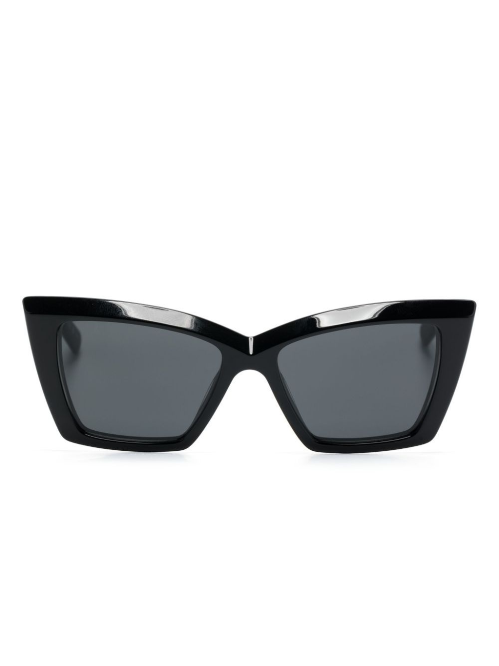 printed cat-eye sunglasses Highlights - Black - Acetate - Cat-eye frame - Grey tinted lenses - Logo print at the arm - Straight arms - Curved tips - These glasses come with a protective case. Made in Italy Composition Acetate 100% SIZE & FIT Measurement Arm Length 5.7 in(14.5 cm) Bridge Width 0.59 in(1.5 cm) Lens Diameter 2.16 in(5.5 cm)