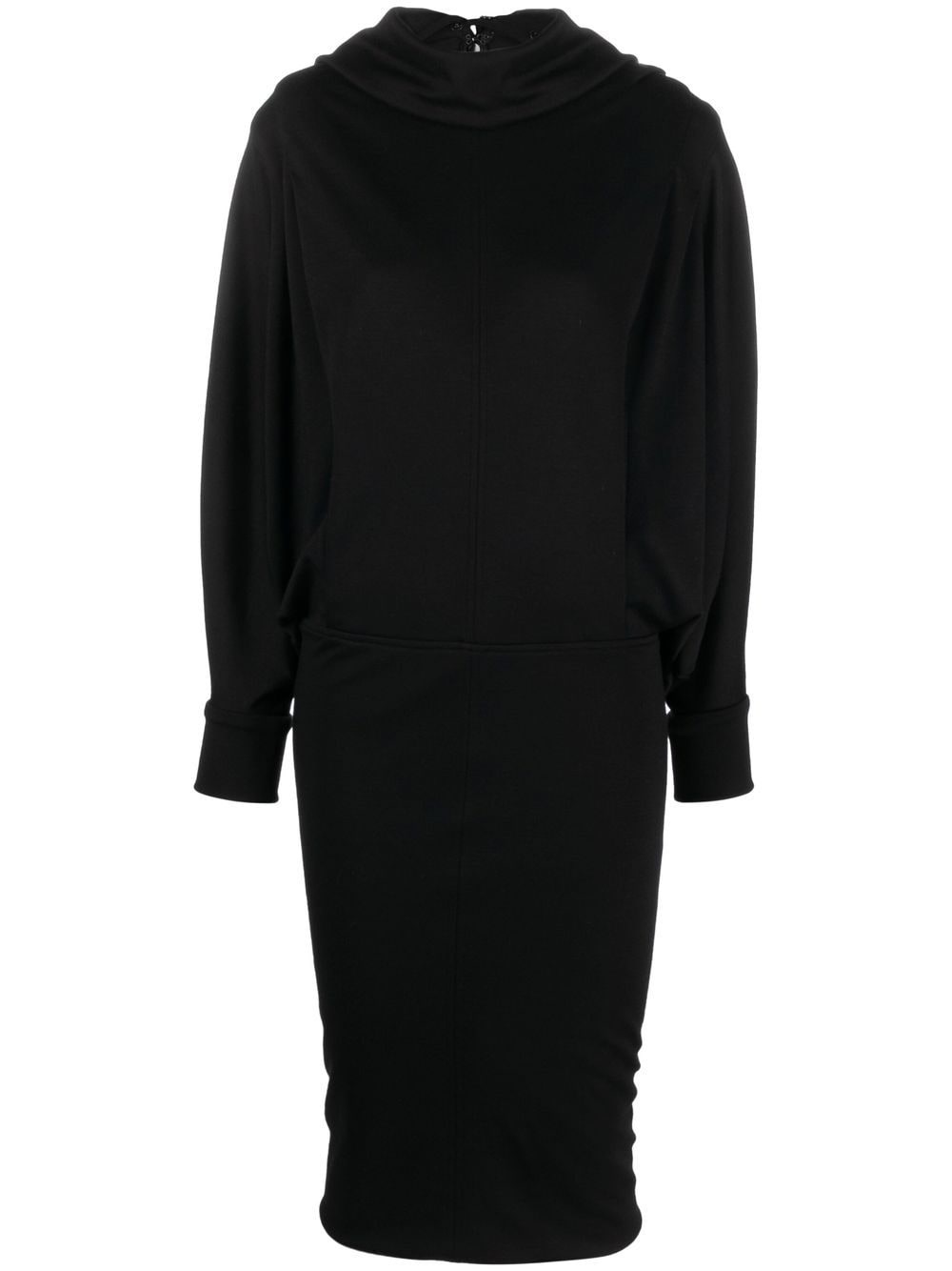 roll-neck mini dress black wool/silk roll neck batwing sleeves long sleeves thigh-length Made in France Composition Lining: Silk 100% Outer: Wool 100% SIZE & FIT Model measurements Height 5 ft 11 in(1.8 m) Bust/Chest 32.67 in(83 cm) Hips 36.22 in(92 cm) Waist 24.4 in(62 cm) FittingInformation This piece fits true to size. We recommend you get your regular size Designed for a loose fit at the bust and waist with a close fit on the hips Made with a mid-weight fabric Washing instructions Dry Clean Only
