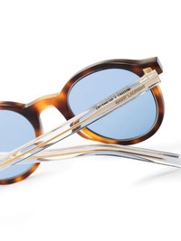 round-frame sunglasses brown acetate tortoiseshell effect round frame blue tinted lenses gold-tone hardware logo-engraved arm curved tips These glasses come with a protective case. Imported Composition Acetate 100%, Acrylic 100% SIZE & FIT Measurement Arm Length 5.7 in(14.5 cm) Bridge Width 0.86 in(2.2 cm) Lens Diameter 1.85 in(4.7 cm) Total Width 5.31 in(13.5 cm)