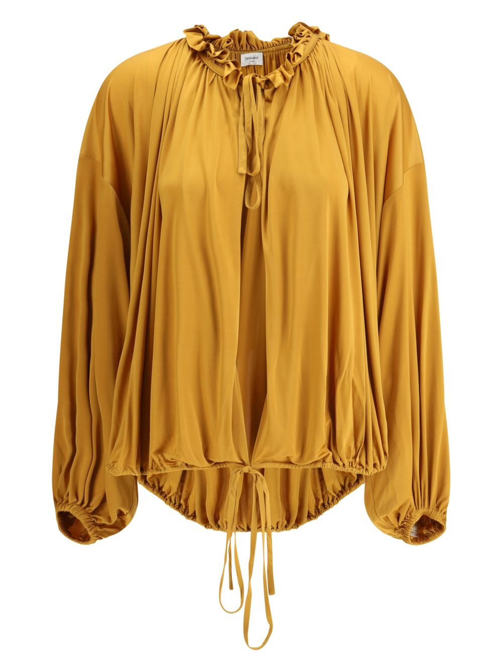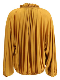 ruffled drawstring top Highlights - Gold - Ruffled neckline - Drawstring hem - Long sleeves - Balloon sleeves - Keyhole neckline Made in Italy Composition Viscose 100% Washing instructions Read Manufacturer Guidelines