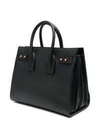 Sac de Jour grained tote bag The iconic Sac de Jour tote bag is imagined by Saint Laurent in a classic black hue for SS23. The structured design and grained texture add a timeless feel to the accessory. Highlights - Black - Calf leather - Grained texture - Logo print to the front - Adjustable detachable shoulder strap - Two rolled top handles - Accordion design - Main compartment - This piece comes complete with a protective dust bag. Made in Italy Composition Outer: Calf Leather 100% SIZE & FIT Model measurements Height 5 ft 10 in(1.78 m) Bust/Chest 33.07 in(84 cm) Hips 36.61 in(93 cm) Waist 24.8 in(63 cm) Measurement DEPTH 5.9 in(15 cm) HANDLE 5.11 in(13 cm) HEIGHT 9.84 in(25 cm) STRAP 19.68 in(50 cm) WIDTH 12.59 in(32 cm)