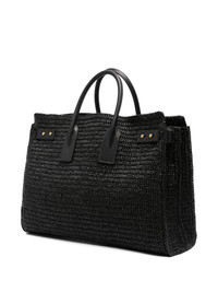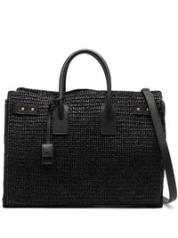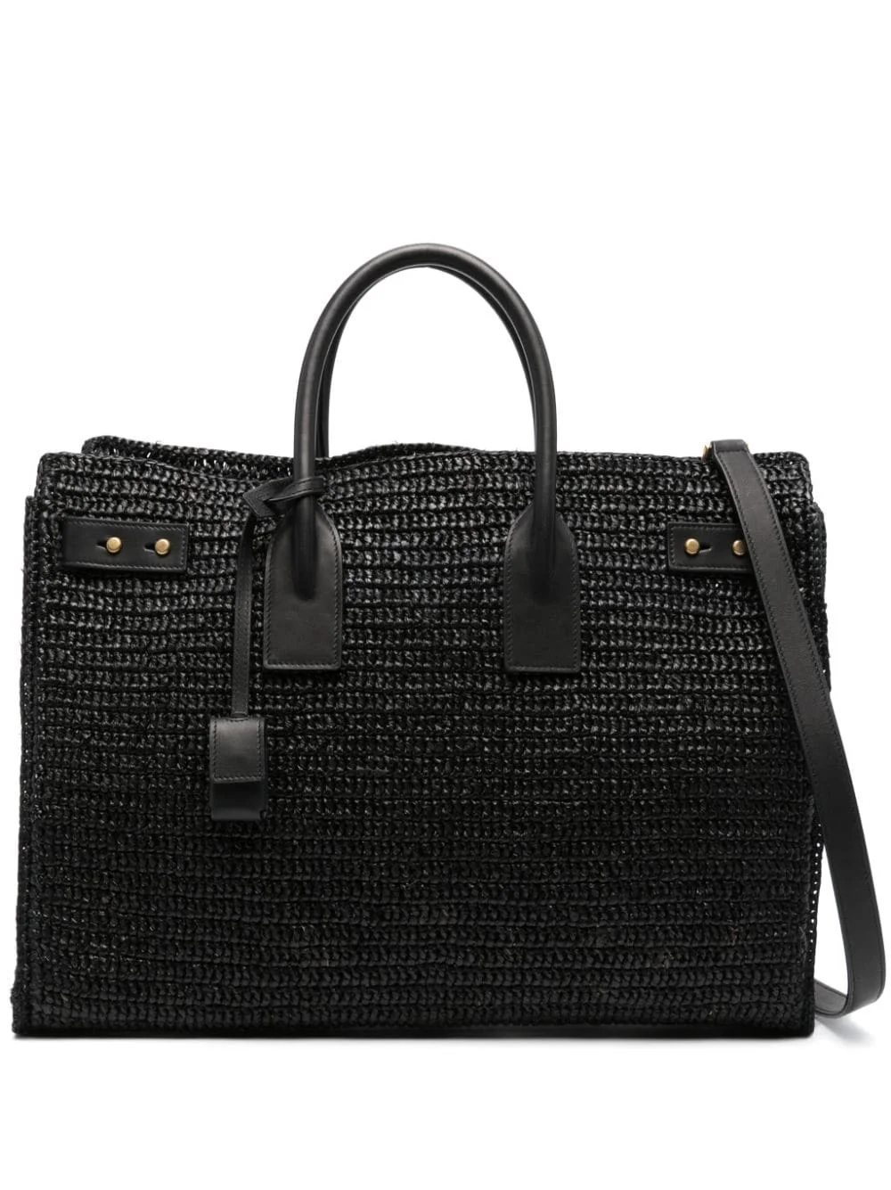 Sac De Jour tote bag The iconic Sac de Jour tote bag is imagined by Saint Laurent in a black raffia construction. It features two top handles and a detachable shoulder strap for versatility. Highlights - Black - Raffia - Leather trim - Hanging key fob - Two rolled top handles - Detachable shoulder strap - Top zip fastening - Main compartment - Gold-tone hardware - This piece comes complete with a protective dust bag. Made in Italy Composition Outer: Raffia 100%, Calf Leather 100% SIZE & FIT Measurement DEPTH 5.11 in(13 cm) HANDLE 4.72 in(12 cm) HEIGHT 11.02 in(28 cm) STRAP 8.66 in(22 cm) WIDTH 16.14 in(41 cm)