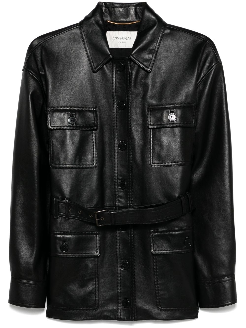 Saharienne jacket Highlights - Black - Front button fastening - Belted waist - Four front flap pockets - Buttoned cuffs Made in Italy Composition Lining: Silk 100%, Cotton 100% Outer: Lambskin 100% SIZE & FIT Model measurements Height 5 ft 11 in(1.8 m) Bust/Chest 32.67 in(83 cm) Hips 35.82 in(91 cm) Waist 25.98 in(66 cm) FittingInformation Designed to be unstructured, offering a loose fit throughout The belt offers adjustability for fitted preferences Soft leather has a supple and smooth construction offering some flexibility Washing instructions Do Not Wash/Do Not Dry Clean