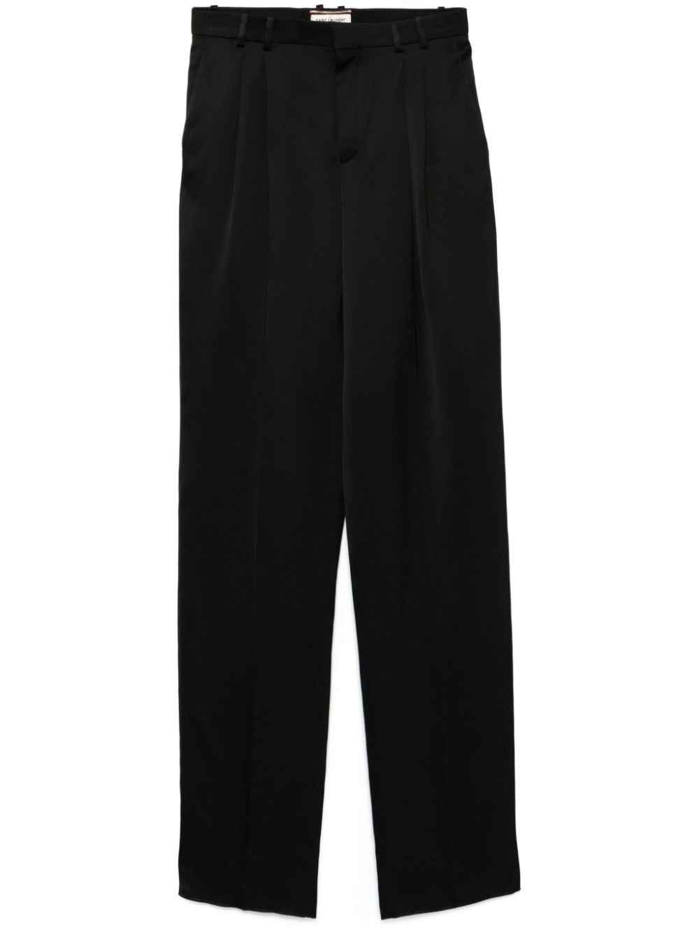 satin trousers Highlights - Black - Silk - Satin weave - Concealed front button, hook and zip fastening - High waist - Belt loops - Pleat detailing - Two side slash pockets - Pressed crease - Dart detailing - Two rear button-fastening pockets - Straight leg Made in Italy Composition Outer: Silk 100% Lining: Cotton 97%, Elastane 3%