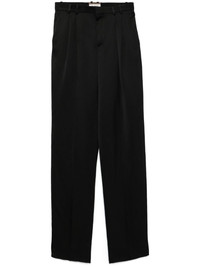 Pleated silk-satin straight-leg pants Black