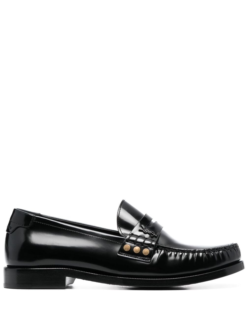 Schuhe penny-slot leather loafers Highlights - Black - Calf leather - Tonal logo plaque - Penny slot - Gold-tone stud detailing - Almond toe - Slip-on style - Branded insole - Flat sole Made in Italy Composition Lining: Calf Leather 100% Outer: Calf Leather 100% Sole: Calf Leather 100% SIZE & FIT Measurement HEIGHT 1.37 in(3.5 cm) Sole height 0.39 in(1 cm)