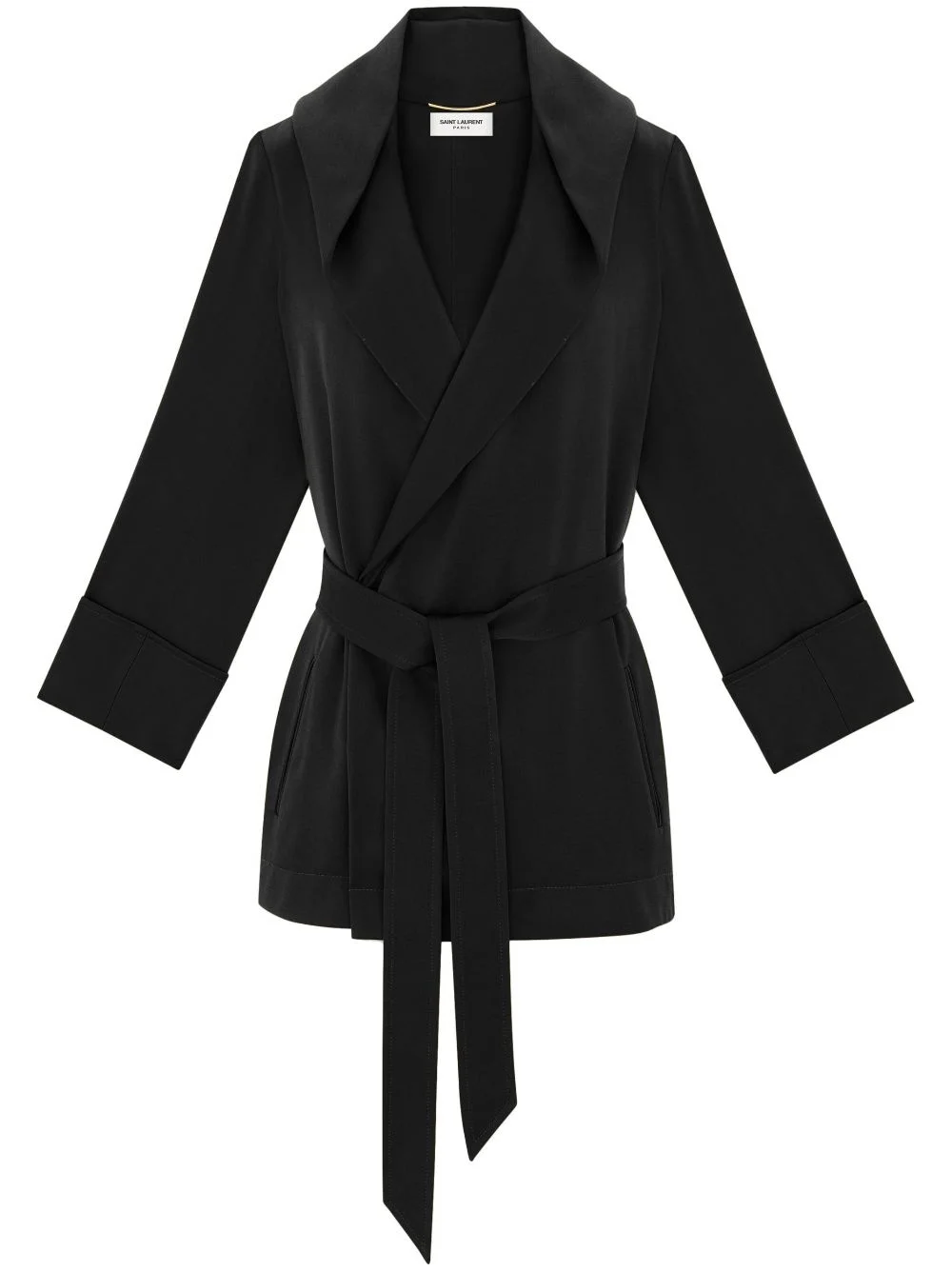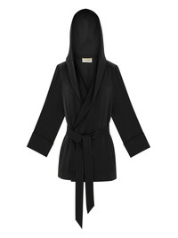 silk jacket Highlights - Black - Silk - Wrap design - Classic hood - Shawl lapels - Self-tie fastening - Long sleeves - Turn-up cuffs - Belt loops - Two front jetted pockets - Curved hem Made in Italy Composition Lining: Silk 100% Outer: Acetate 71%, Viscose 29% SIZE & FIT Measurement LENGTH 31.49 in(80 cm) SLEEVE LENGTH 27.95 in(71 cm) Washing instructions Dry Clean Only
