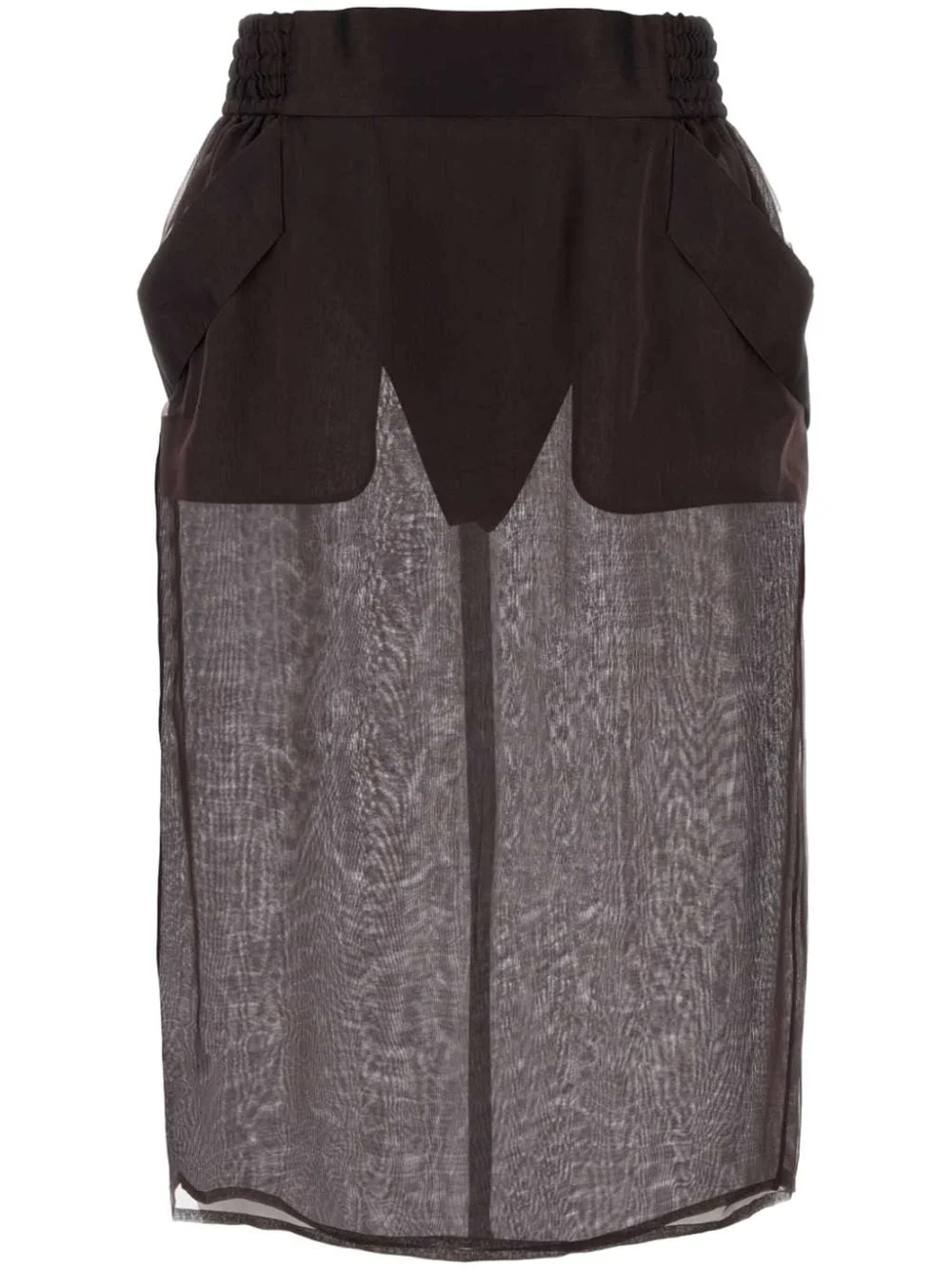 semi-sheer midi skirt Highlights - Chocolate brown - Silk - Semi-sheer construction - High-waisted - Rear zip fastening - Two side slit pockets - Straight hem - Mid-length Made in Italy Composition Silk 100% Washing instructions Read Manufacturer Guidelines