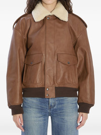 shearling-collar ribbed bomber jacket Highlights - Leather bomber jacket with stretch ribbed knit details, aviator style, shearling shirt collar, zip closure and front hidden snap buttons, pockets, long cuffed sleeves, cupro and cotton lining.100% calfskin leather (bos taurus) Made in Italy Composition Leather 50%, Sheep Skin/Shearling 50%
