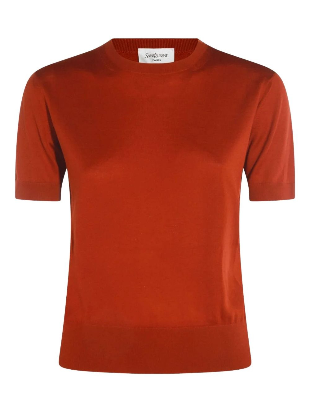 short-sleeve crew-neck sweater Highlights - Rust - Short sleeves - Crew neck - Ribbed hem Made in Italy Composition Wool 100% Washing instructions Read Manufacturer Guidelines