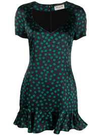 short-sleeve ruffled mini dress blue/mint green silk bold polka dot print square neck short sleeves A-line skirt thigh-length ruffle hem Made in Italy Composition Outer: Silk 100% SIZE & FIT Model measurements Height 5 ft 9 in(1.75 m) Bust/Chest 30.7 in(78 cm) Hips 34.64 in(88 cm) Waist 22.83 in(58 cm) FittingInformation This piece fits true to size. We recommend you get your regular size Designed for a close fit at the bust, waist and hips Made with a mid-weight non-stretch fabric